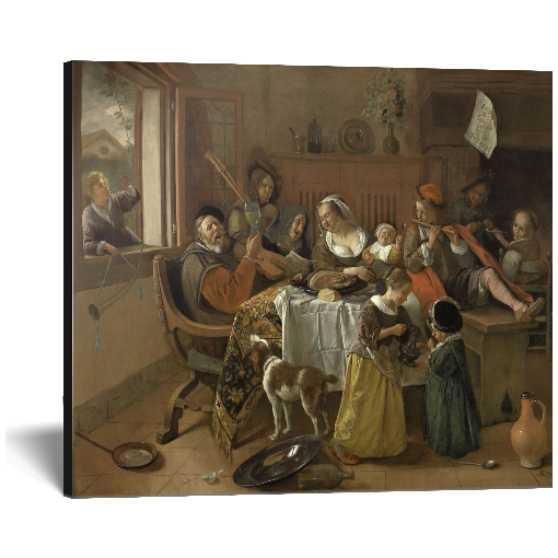 Jan Steen is considered one of the most humorous artists of the Dutch Golden Age. Daily life was his main pictorial theme, and his works are known for their psychological insight, sense of humor and abundance of color. Many of the genre scenes he portrayed are lively to the point of chaos, intoxication, and lustfulness. These scenes are often full of obscene references.