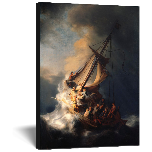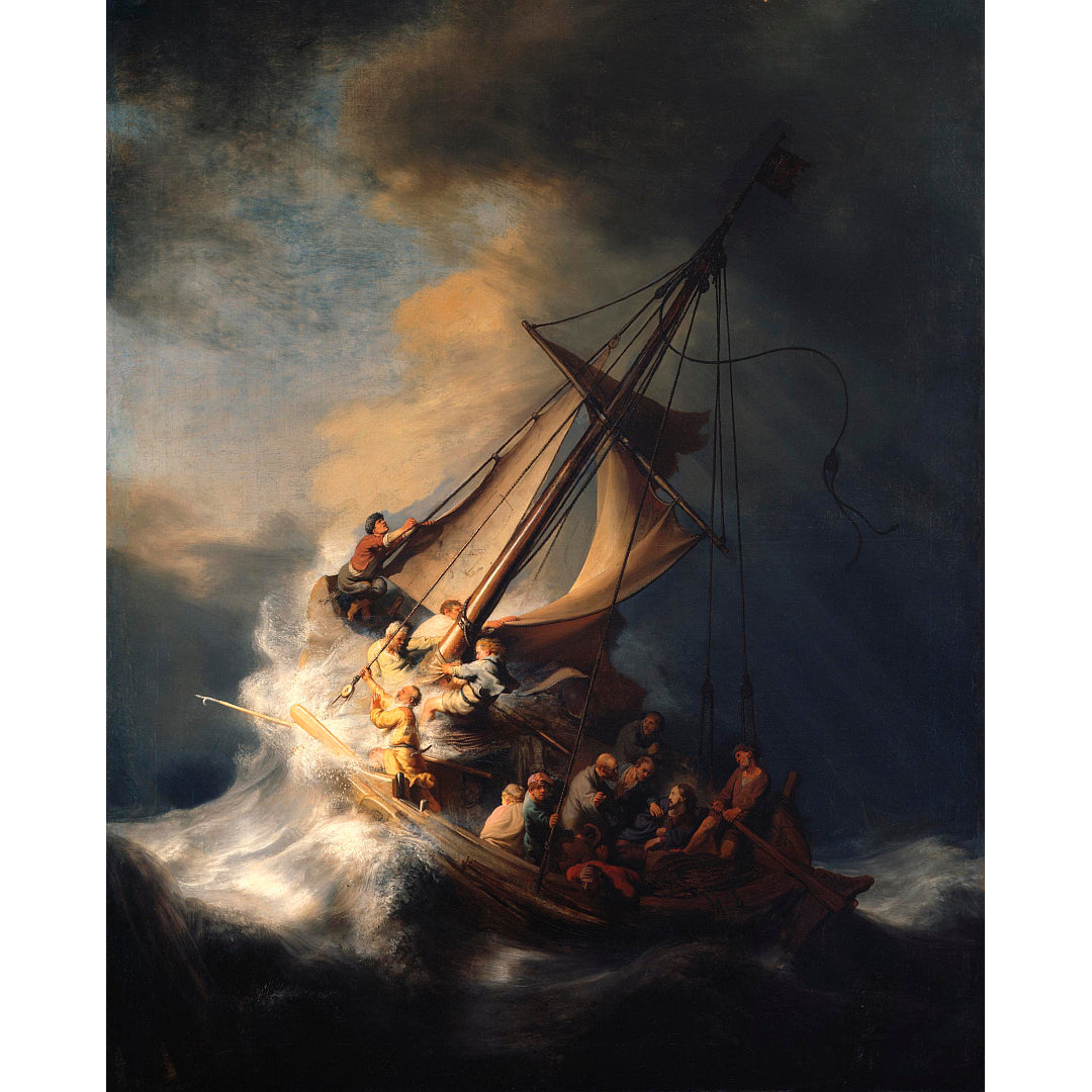 Among the largest and earliest of Rembrandt's works, the painting depicts the biblical event in which Jesus calmed the storm on the Sea of Galilee. The disciples in charge of the vessel were scared by the sudden storm and awoke a sleeping Jesus in their panic. It is Rembrandt's only seascape.